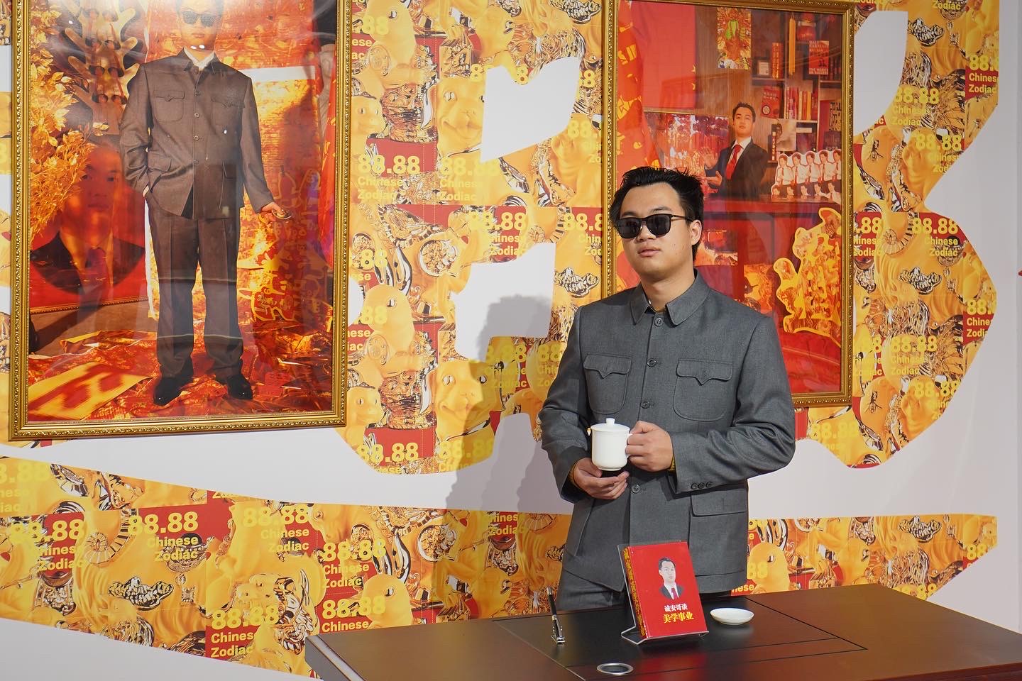 Wealth Art (or Aesthetician Tells You Why Artists Need Wealth) is an installation of photography, experimental writing, art books, and pattern design that uses the color red to construct a surreal scenario which is inspired by the office design of a Chinese company president. As a continuation of The Career of Beauty (or Aesthetician Tells You Why Artists Need Team Vitality), the project continues to use the methodology of role-playing to portray the image of "Aesthetics Master Xia”, and attempts to connect and blur the boundaries between the multiple topics of business success theory, tactics of pyramid schemes, the legacy of communist politics, and Chinese traditional culture, and to explore how these issues collectively point to the construction of a power system.