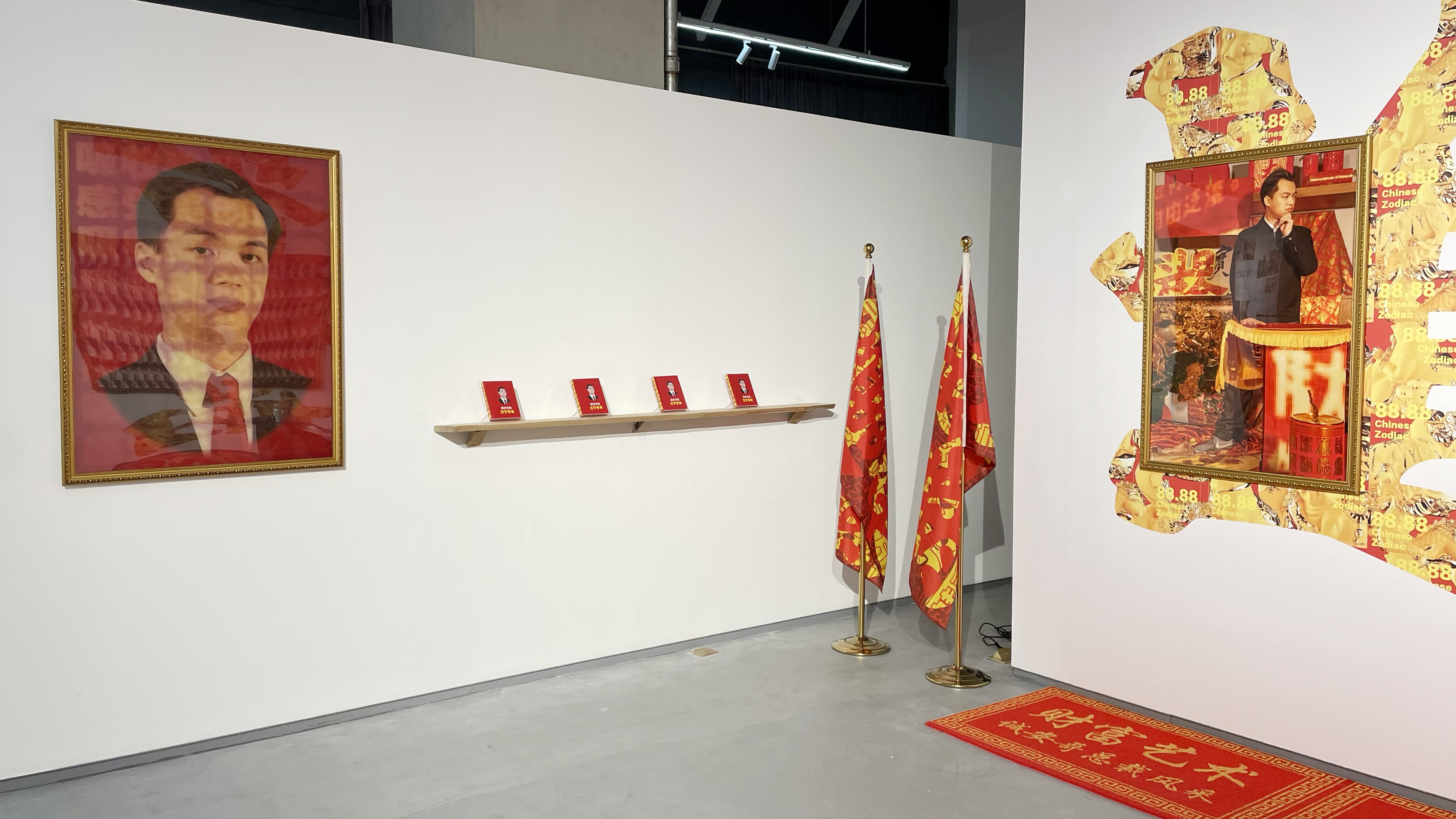 Wealth Art (or Aesthetician Tells You Why Artists Need Wealth) is an installation of photography, experimental writing, art books, and pattern design that uses the color red to construct a surreal scenario which is inspired by the office design of a Chinese company president. As a continuation of The Career of Beauty (or Aesthetician Tells You Why Artists Need Team Vitality), the project continues to use the methodology of role-playing to portray the image of "Aesthetics Master Xia”, and attempts to connect and blur the boundaries between the multiple topics of business success theory, tactics of pyramid schemes, the legacy of communist politics, and Chinese traditional culture, and to explore how these issues collectively point to the construction of a power system.